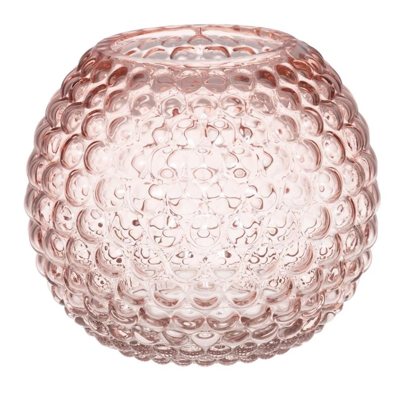 Kaunis lasinen vaasi sopii niin koristeeksi kuin maljakoksi kukille. Vaasin pinnassa on koholla olevia puolipalloja. Tuote on pintavärjätty.