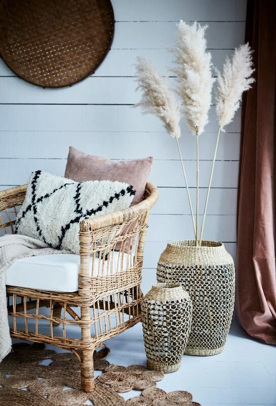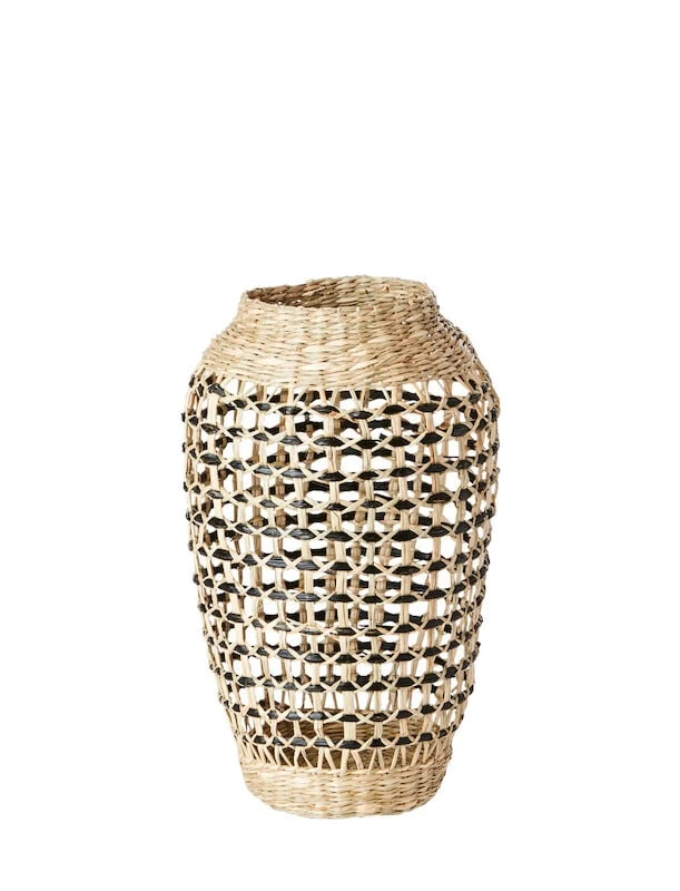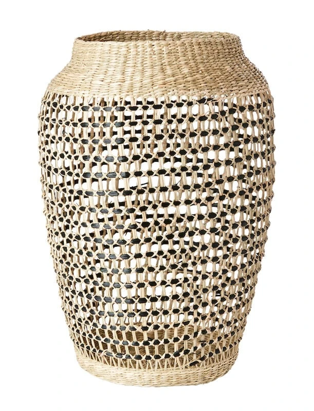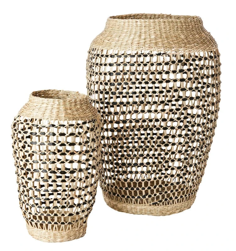 NÀyttÀvÀ, boheemiin tyyliin sopiva Affari Collect korisetti, jossa on kaksi eri kokoista koria. Materiaalina meriheinÀ, vÀri luonnonvÀri/musta. Korien mitat, pienempi: korkeus 35 cm, halkaisija 20 cm, isompi: korkeus 50 cm, halkaisija 30 cm. Koreihin voi sijoittaa esimerkiksi trendikÀstÀ kuivattua pampaheinÀÀ, kasvin tai pitÀÀ tyhjillÀÀn, on kaunis myös niin.