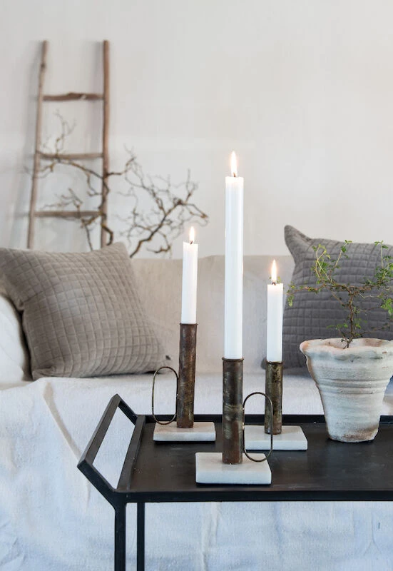 Kaunis Affari Unique kynttilänjalka tuo tunnelmaa pimeisiin iltoihin. Koko M. Materiaalina antiikkikäsitelty rauta sekä marmori. Kahva on kaunis yksityiskohta.