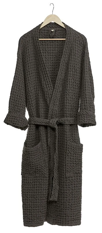 Anno Puro kylpytakki on pestyä ekologista puuvillavohvelia ja se on kevyen ja mukavan tuntuinen ihoa vasten. Esipesu tekee puuvillasta pehmeän ja antaa kylpytakille sen rennon ilmeen. Kylpytakki imee hyvin kosteutta ja kuivuu nopeasti käytön jälkeen. Ylellinen Puro-kylpytakki sopii sekä miehille ja naisille ja siinä on kaksi isoa taskua sekä vyö.