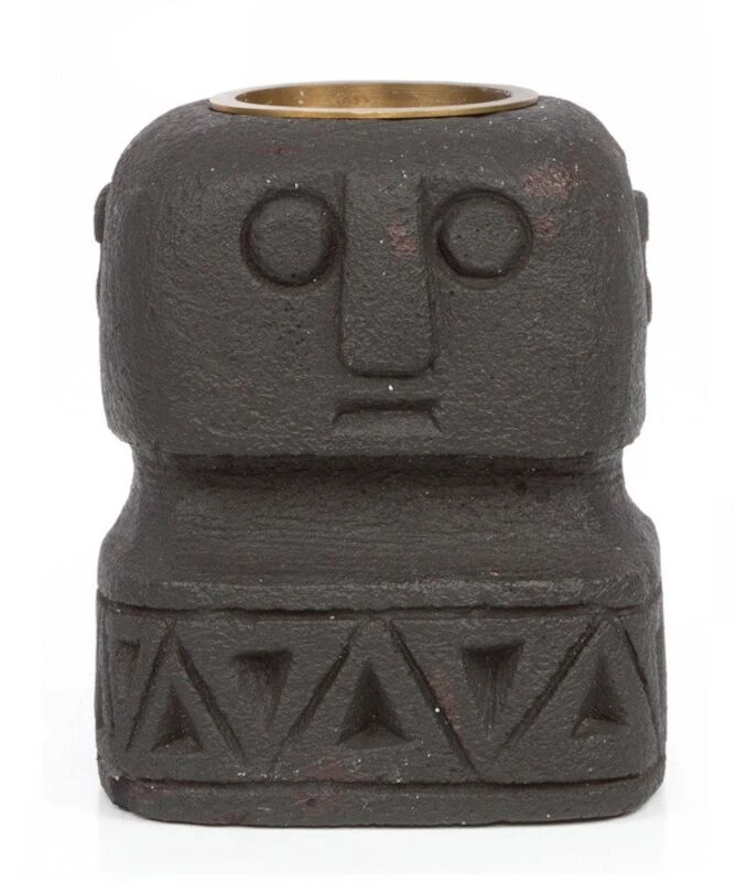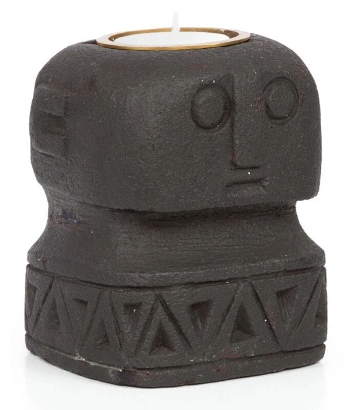 Sumba kivimies kynttilänjalka on sopiva tuikkukynttilöille. Hiekkakivestä veistetty kynttilänjalka on tehty käsityönä.
