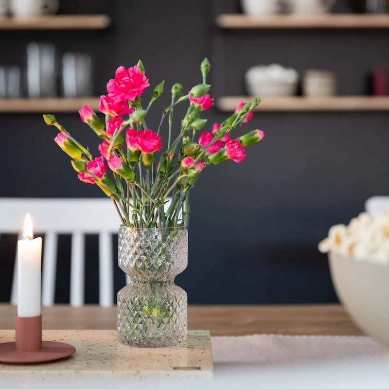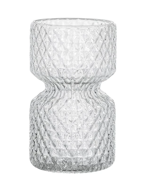 Upeasti muotoiltu Bloomingville Heba lasimaljakko. Maljakkoon saa kauniisti esille leikkokukat ja se toimii myös sellaisenaan koriste-esineenä esimerkiksi vitriinissä. Maljakon pinta on kuvioitu.
