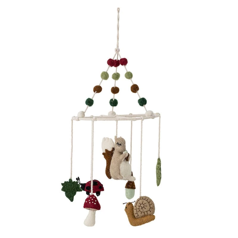 Kaunis ja värikäs Bloomingville mobile lastenhuoneeseen. Materiaalina on villa. Pieniä vaihteluita voi esiintyä värissä, ompeleissa ja mitoissa.