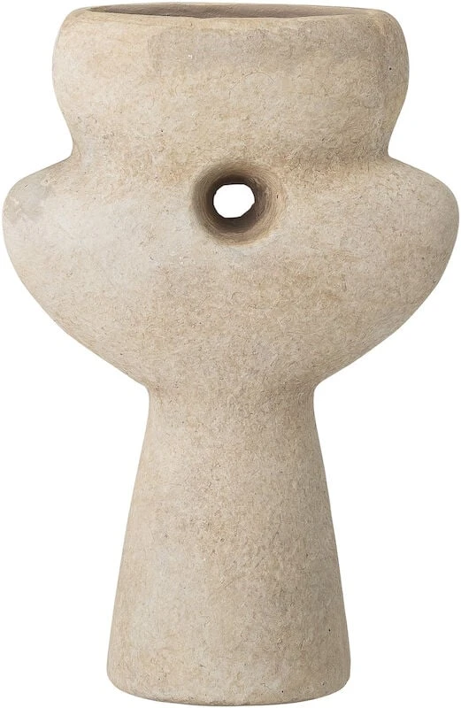 Bloomingville Ngoie vaasi on erikoinen, mutta kauniilla tavalla koristeellinen. Muotoilu on täysin uudenlaista ja on tarkoitettu korostumaan muiden jäädessä jopa hieman vaasin varjoon. Vaasin keskelle on sijoitettuna reikä, joka hajottaa muotoa ja antaa sille samalla kevyen kosketuksen. Ngoie on valmistettu terrakottasta.
