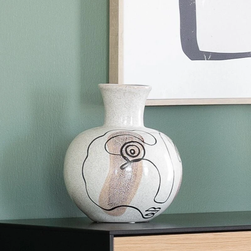 Upea käsin maalattu maljakko. Jokainen tuote on ainutlaatuinen ja värivaihteluja voi esiintyä. Sopii sisustukseen käytettäväksi näyttävänä koriste-esineenä ja kauniiden kukka-asetelmien kanssa.