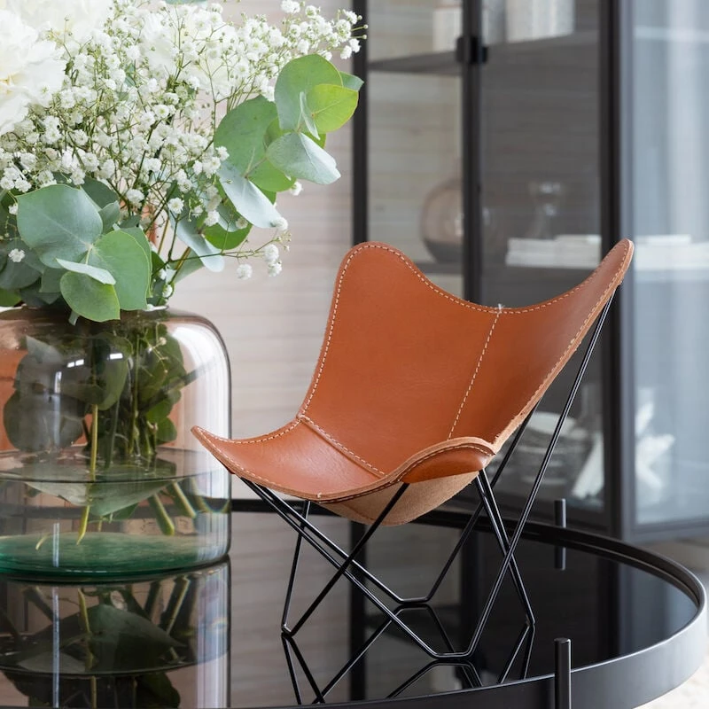 Todella söpö Cuero design mini lepakkotuoli koristeeksi tai esimerkiksi barbeille ja nukeille nojatuoliksi. Lepakkotuoli on tehty laadukkaasta italialaisesta, kasviparkitusta nahasta. Nahka tulee Toscanan alueelta, josta tulee perinteisesti paras kasviparkittu nahka. Runko on laadukasta mustaksi maalattua terästä.
