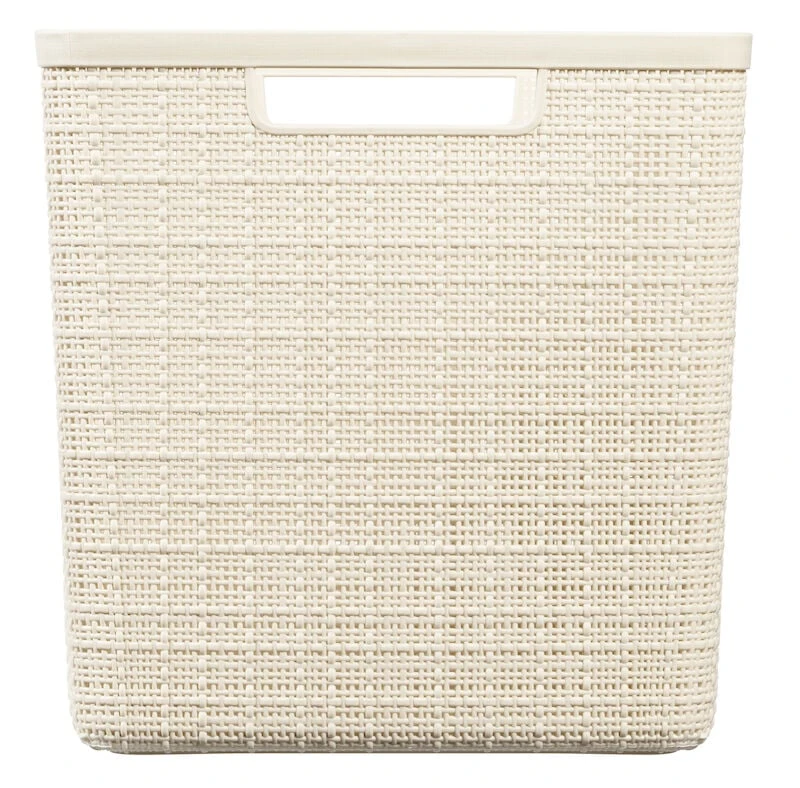 Cube kori on valmistettu kodin järjestyksen ylläpitoa ajatellen. Ihanteellisia ominaisuuksia on monta: kantokahvat, helposti puhtaana pidettävä materiaali, korit ovat limittäin pinottavia. Voit käyttää koria esimerkiksi pyykkien järjestelyssä, lastenhuoneessa, eteisessä tai kotitoimistossa. Pinnan kuvio muistuttaa neulottua kuvioa.