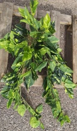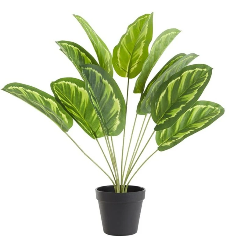 Aidonnäköinen Day tekokasvi, jonka lehdet ovat kirjavat. Kasvi on istutettu mustaan ruukkuun. Kasvin korkeus on 50 cm ja materiaali on muovia. Helppohoitoinen kasvi on hyvä lisä tuomaan vehreyttä esim. olohuoneen sisustukseen.
