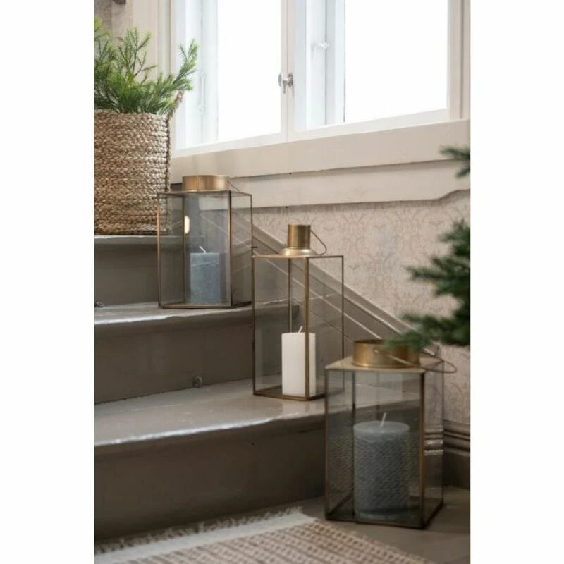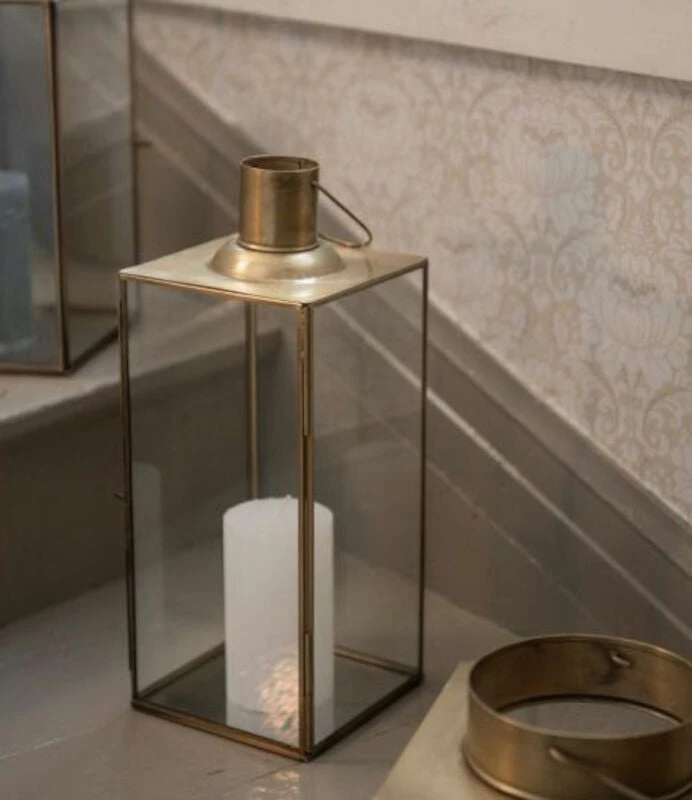 Kaunis ja ajaton kullanvärinen Haru lyhty. Materiaalina metalli ja lasi. Yhdistämällä molempia kokoja saat kauniin kokonaisuuden.