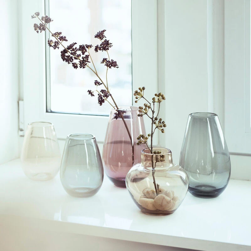 Kaunis pisaran muotoinen vaasi, jonka ajaton muotoilu kestää katseen vielä vuosienkin päästä. Materiaalina läpivärjätty lasi. Käsinpesu, ei suositella vahvoja pesuaineita.