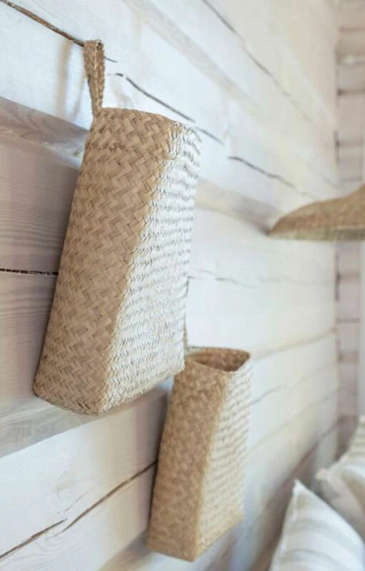 TyylikÀs Fanni K riippuva koris soveltuu hyvin keveiden esineiden sÀilytykseen. Korissa on ripustuslenkki, josta korin voi ripustaa seinÀlle. Materiaalina on meriheinÀ, joka on luonnonmateriaali. TÀstÀ johtuen tuotteiden vÀri voi vaihdella.