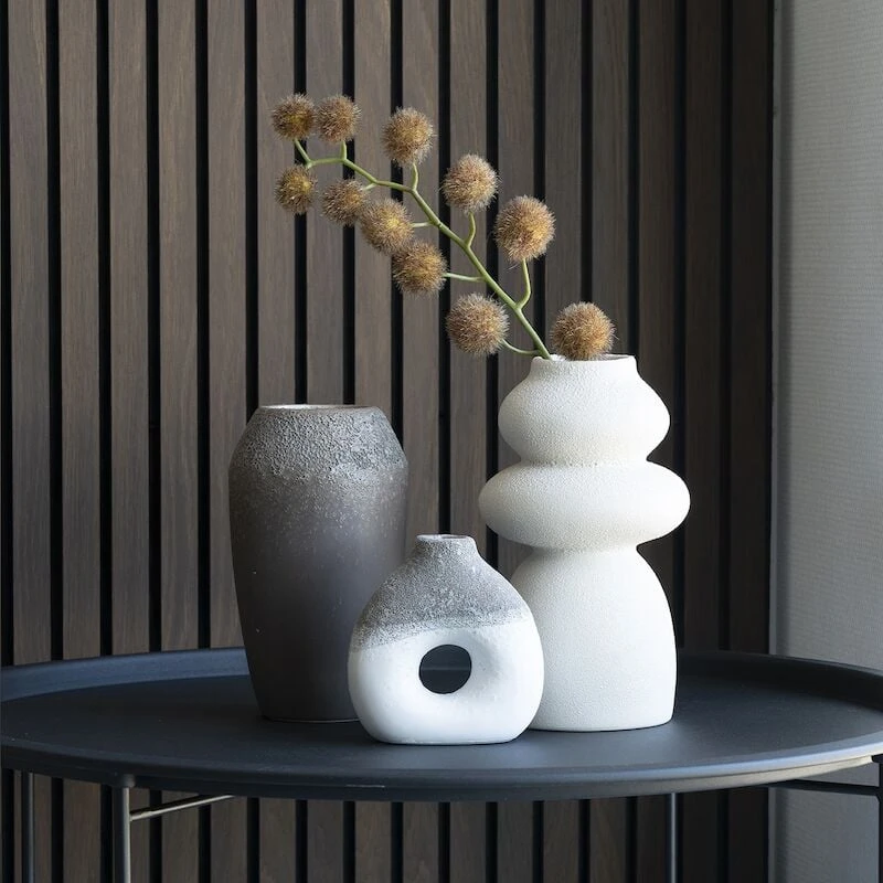 Tuo kauneutta ja tyyliä kotiisi tällä upeasti muotoillulla House Nordicin keraamisella maljakolla. Maljakko on muotoiltu epäsymmetrisillä pyöreillä muodoilla, jotka tuovat sille modernin ja persoonallisen ilmeen. Sen kauniit yksityiskohdat ja tyylikäs muotoilu tekevät siitä täydellisen; kaunis ja ajaton. Maljakko on valmistettu laadukkaasta keramiikasta, joten se on pitkäikäinen ja kestää hyvin käyttöä. Se on ihanteellinen leikko- ja kuivakukille.