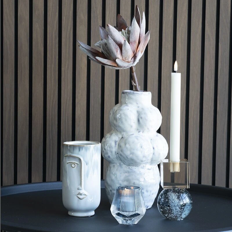 Upea keraaminen maljakko isoilla ja näyttävillä kuplilla. Näyttävä maljakko kerää katseita ja tuo sisustukseen kodikkuutta. Maljakkoon sopii kauniisti niin kuivakukat, kuin tuoreet leikkokukat.