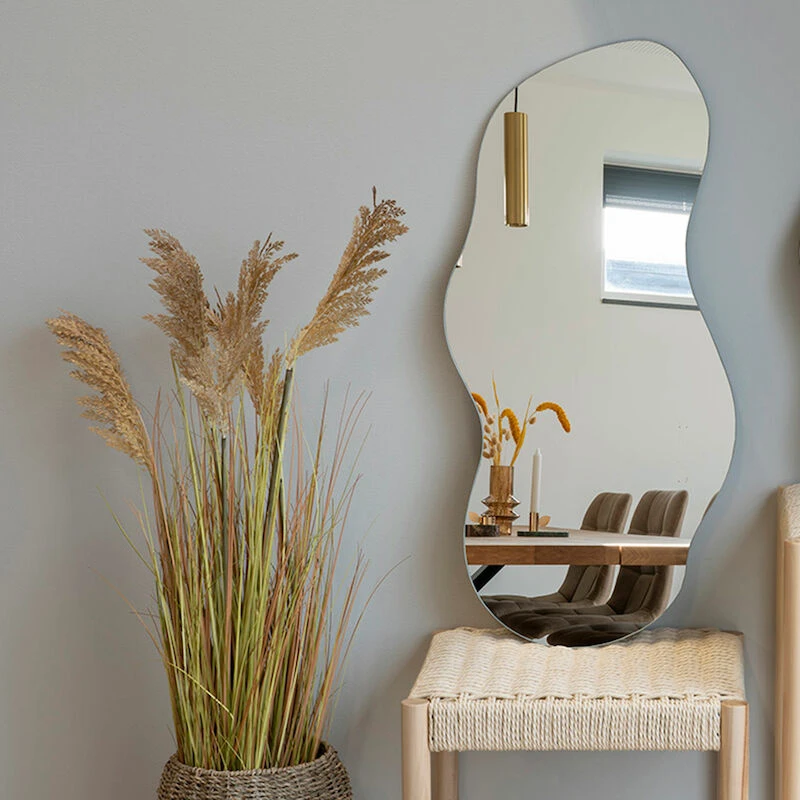 House Nordic Palermo on pitkä ja muodoilla leikkivä peili. Kehykset alumiinia ja peili lasia. Sopii sisustukseen, johon halutaan uutta suuntaa modernilla tavalla. Pakkaus ei sisällä kiinnitystarvikkeita.