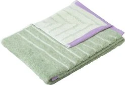 Hübsch Promenade kylpypyyhe 70×140 cm on raidallinen ja värikäs pyyhe koteihin. Promenade pyyhkeissä on leikkisä yhdistelmä värien ja materiaalien välillä, sekä selkeä estetiikka tiivistämässä kokonaisuutta. Promenadessa on rohkeita värejä, graafisia linjoja, muotoja ja tekstuuria. Promenade on ihanan pehmeä pyyhe arkeen.