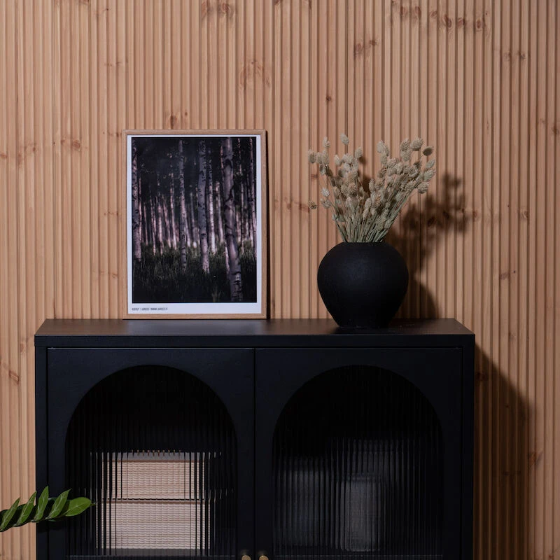 Jarccen Koivut julisteessa voi tuntea heinän kahinan ja oksien rapsahtelun jalkojen alla. Rantakoivikot on meille suomalaisille tunteita herättäviä paikkoja. Tämä kuva koivuista on kuvattu aamuyöstä, kun ensimmäiöset pikkulinnut ovat alkaneet availla kurkkujaan uuteen päivään.