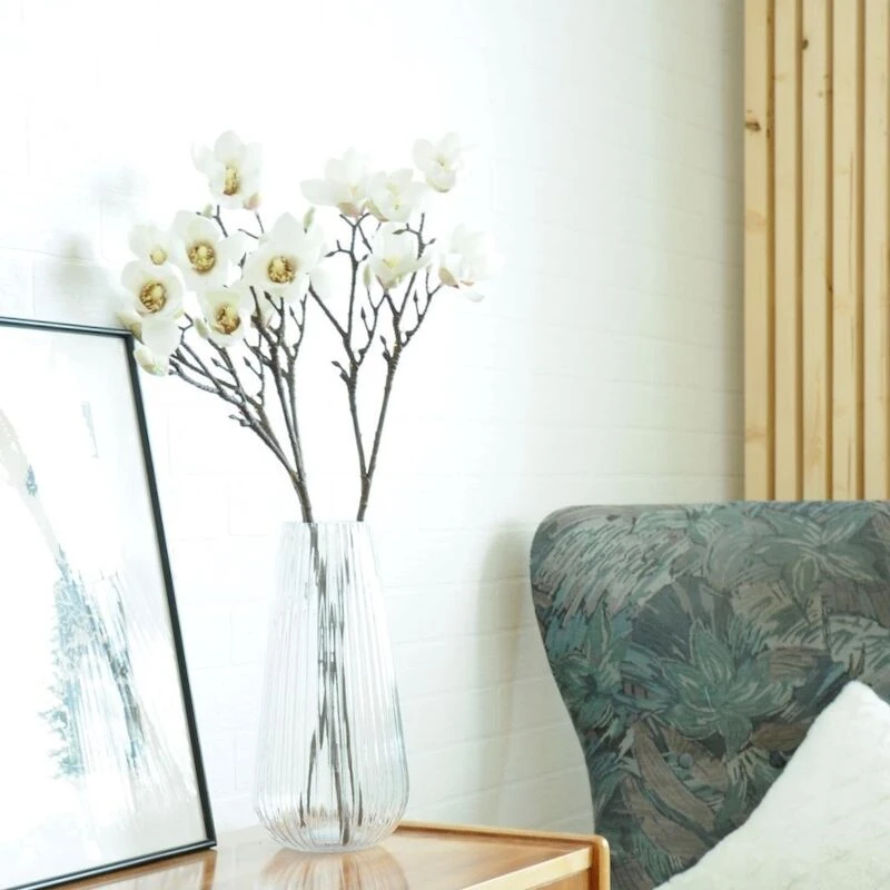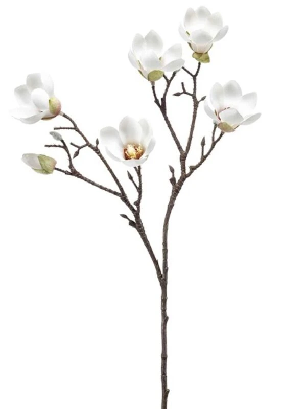 Kaunis ja aidonnäköinen magnolian oksa. Korkeus 65cm. Koristeellinen oksa sopii komean pituutensa ansiosta suuriin kimppuihin korkeissa maljakoissa.