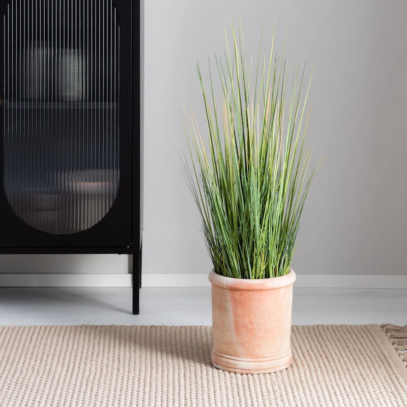 Viiltoheinä tekokasvilla teet näyttäviä asetelmia terassille tai sisätiloihin. Materiaalina on vankkaa polyesteriä, jonka värisävy muistuttaa luonnonkasvin värisävyä. River Grass sopii myös uimahallikasviksi, koska siinä ei ole hapettuvia metalliosia. Ruoho sopii hyvin erilaisiin pieniin ja suuriin ruukkuihin, tilanjakajaksi tai yksittäiskasviksi. Kasvi on alaosastaan runsas ja tuuhea. Viiltoheinä toimitetaan istutusruukussa. Kuvan istutusruukussa tekokasveja on 3 kpl.