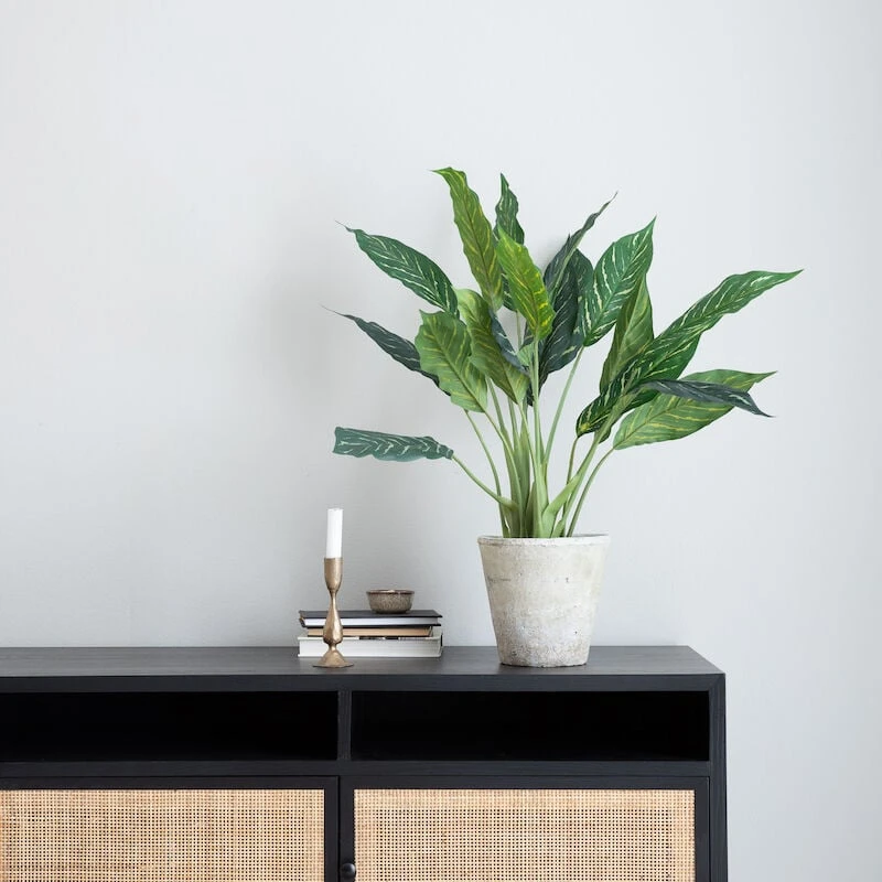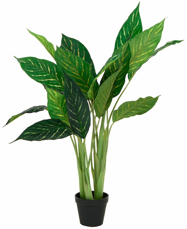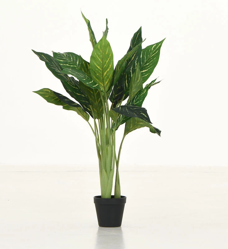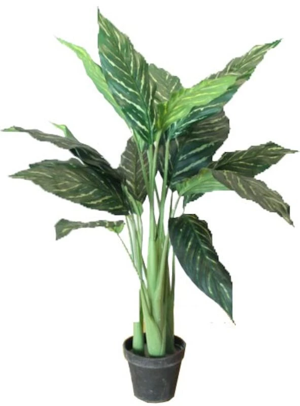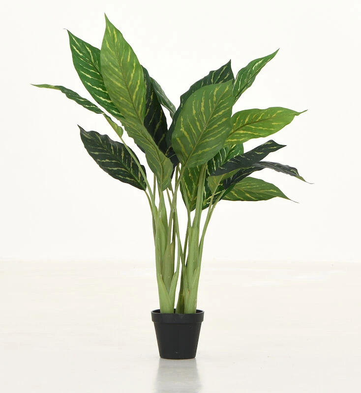 Aidon näköinen Mariavehka tekokasvi. Näyttävät tukevat kaksiväriset lehdet. Silkkikasvin leveys on 45cm ja korkeus 75 cm. Mariavehka toimitetaan pienessä istutusruukussa. Yhdistämällä useamman silkkikasvin yhteen, saat todella näyttävän kokonaisuuden. Kuvassa olevassa sisustusruukussa Mariavehkoja on kolme.