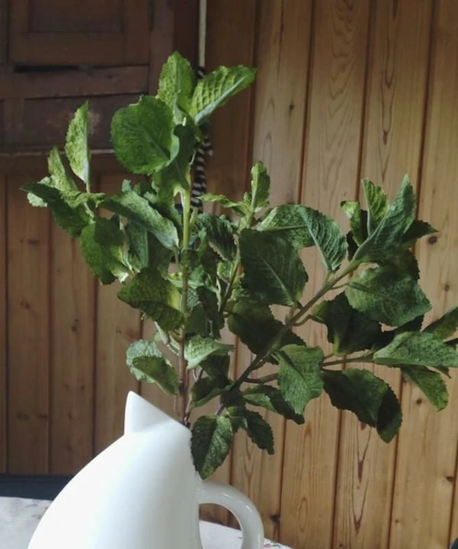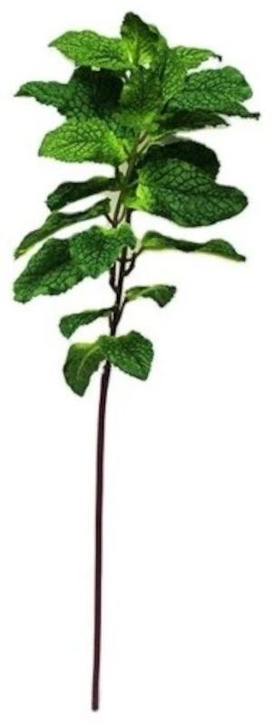 Silkkinen mintunoksa tekokasvi sopii kesä istutuksiin tai sellaisenaan maljakkoon. Mintun korkeus noin 40 cm, lehtiä oksassa 27 kpl. Ei sisällä istutusruukkua, kasvi painetaan suoraan istutusalustaan.