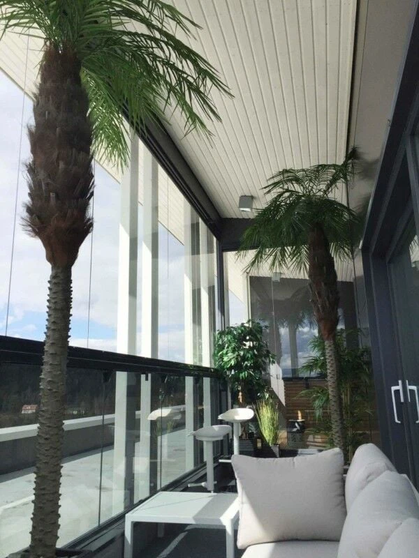Kun et pääse etelän lämpöön palmun alle, hanki oma palmu. Silkkinen hienolehtinen taatelipalmu sopii vaikka katetulle terassille tai kodin viihtymistiloihin. Palmussa aito putkimainen runko. Kasvilla ei ole istutusruukkua. Kuvassa näkyvät sisustusruukku ei kuulu mukaan.