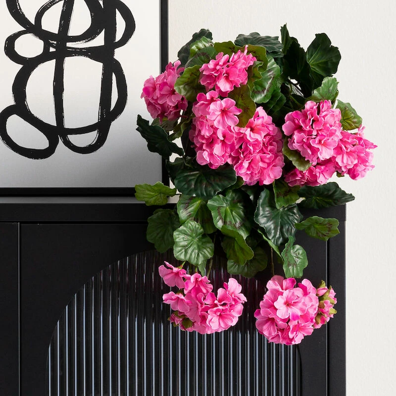Kaunis ja luonnollisen näköinen riippuva jättipelargonia tekokasvi. Tuuhean pelargonian pisimmät versot ovat jopa 40 cm pituiset. Pelargonian voi istuttaa istutustapin avulla joko suoraan multaan, styroxiin tai polyuretaaniin. Kauniit perinteiset värit. Tekokasvit sopivat hyvin allergiaperheeseen.