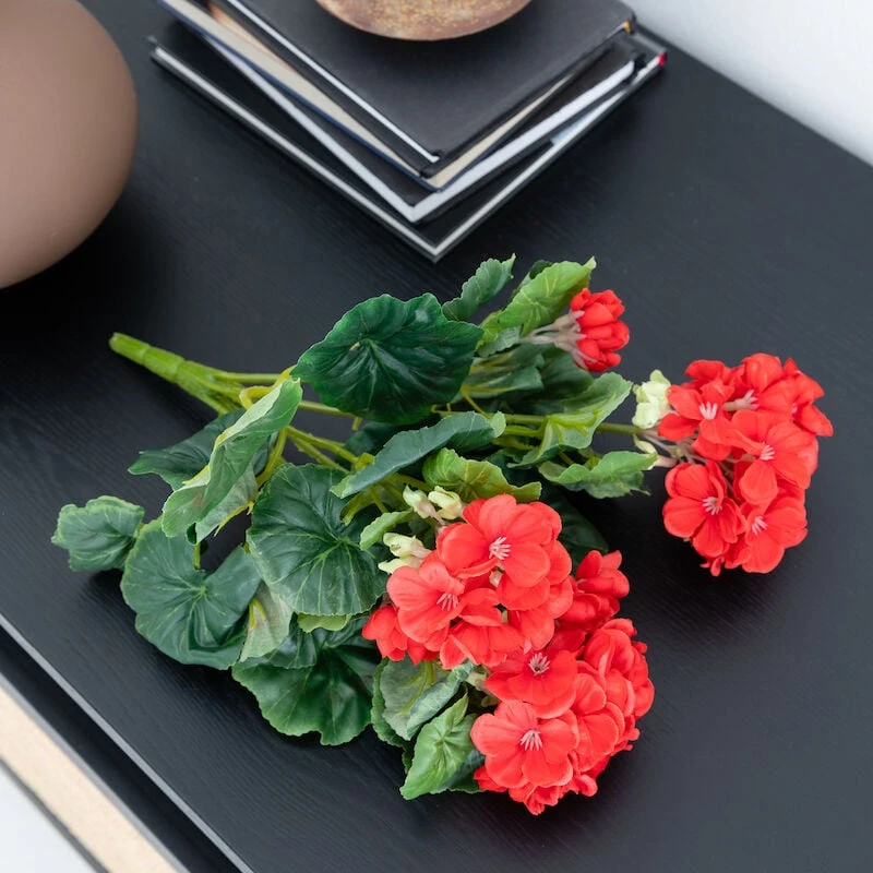 Iso ja tuuhea aidonnäköinen Pelargonia tekokasvi. Pelargonian korkeus noin 30 cm. Ihastuttavat värit. Toimitetaan ilman istutusruukkua. Kukassa on ns. istutustappi, joka voidaan painaa suoraan istutusmateriaaliin. Kuvassa näkyvä ruukku ei kuulu mukaan toimitukseen.