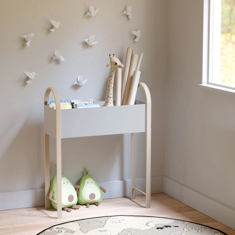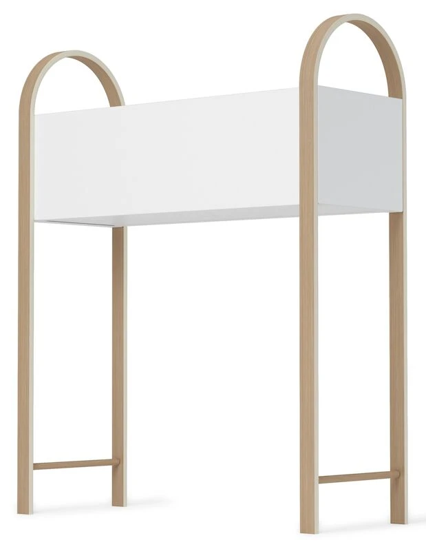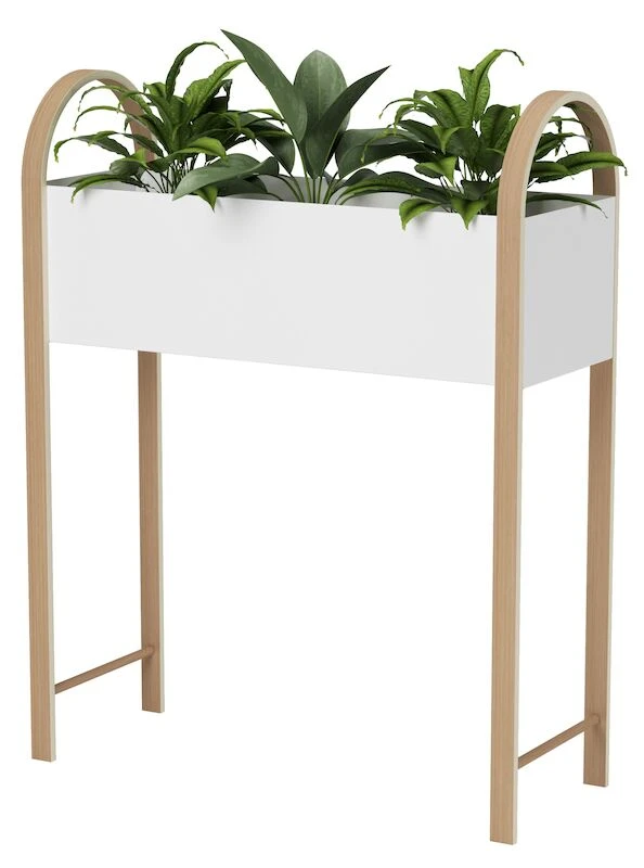 Umbra Grove kukkalaatikko kauniilla muotoilulla. Laatikko sopii nimensä mukaisesti kukille ja kasveille, kukat on hyvä istuttaa esim. istutusruukkuihin koska materiaali ei ole vedenpitävä. Tämä on mainio valinta myös lelujen tai kosmetiikan säilytykseen. Materiaalina ruostumaton metalli, joka on jauhemaalattu valkoiseksi. Jalat ovat luonnonväristä tuhkapuuta.