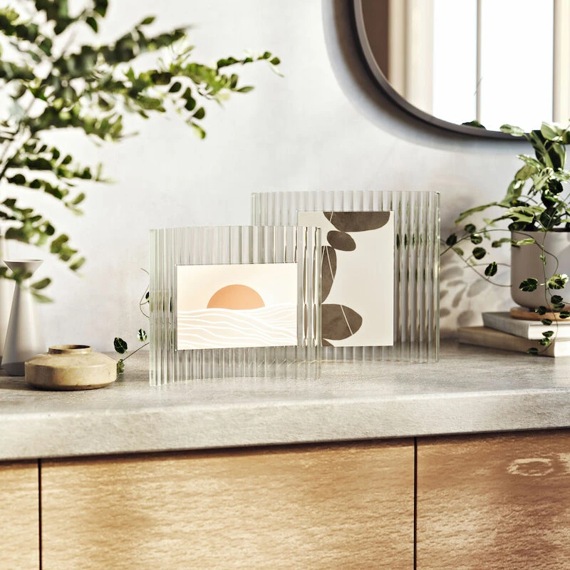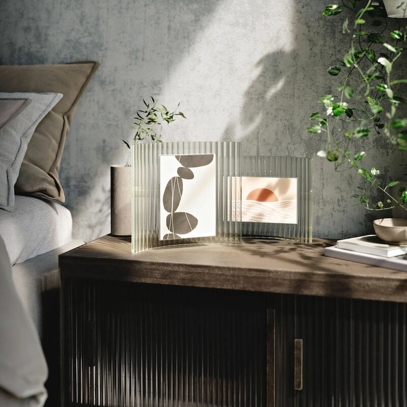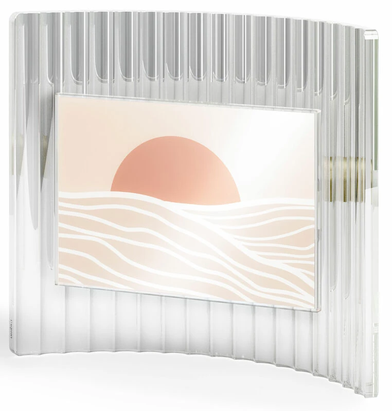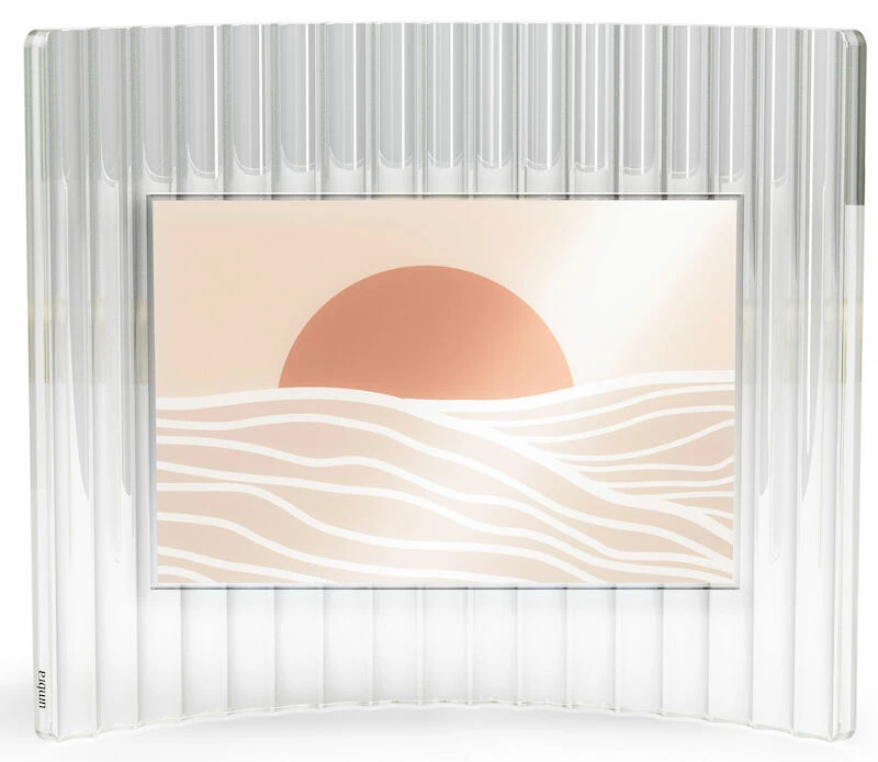 Umbra Ripley kehys korostaa kuvaasi ainutlaatuisella ja tyylikkäällä tavalla. Modernissa Ripley kehyksessä on uurrettu kaareva lasitausta joka tuo lisää eleganssia ilmettä siihen. Kehyksessä on takana nuppi, jonka avulla voit säätää haluatko asettaa kuvan pystyyn vai vaakaan esille. Kuva on helppo vaihtaa irrottamalla kehyksen “kansi”.
