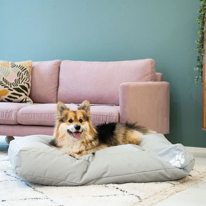 Anna lemmikillesi lahja ja ilahduta häntä laadukkaalla koiranpedillä. Peti on mukava, pehmeä ja se muotoutuu helposti lemmikin painosta. Pedin sivussa on valkoinen painettu tassukuvio. Helppohoitoinen kamu koiranpeti soveltuu käytettäväksi sisätilan lisäksi myös katetulla terassilla tai lasitetulla parvekkeella, jotta lemmikkikin pääsee nauttimaan rennosti ulkoilmasta! Puhdistetaan tarvittaessa kostealla liinalla. Miljöökuvauksessa on käytetty koiranpetiä kokoa 120×80 cm.
