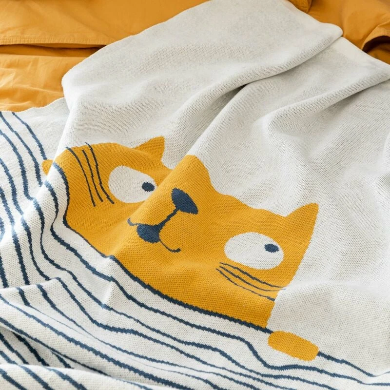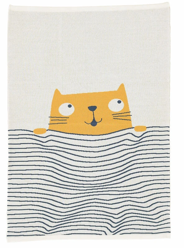 Hauska ja monivärinen Kisu on pehmeä, puuvillainen lasten torkkupeitto, joka on neulottu jakardikoneella. Torkkupeitossa “asuu” unikaveri, joka lämmittää pienokaista päiväunilla.