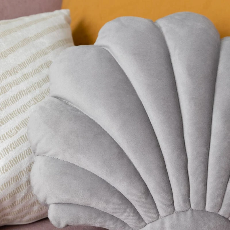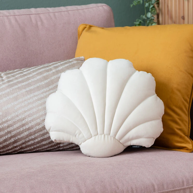 Simpukkatyyny on hienostunut samettipintainen koristetyyny. Simpukan kuorta muistuttava muotoilu ja hienostuneet vaaleat sävyt sävyt sopivat monenlaiseen sisustukseen. Pehmeä vanutäytteinen simpukkatyyny antaa kivasti ilmettä sohvalle, sängylle tai lastenhuoneeseen monenlaiseen käyttöön. Simpukka samettirahi on valmistettu samansävyisestä sametista.