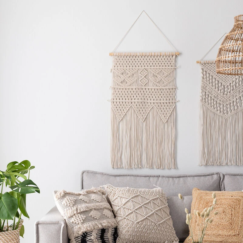 Kaunis kudottu Solmu seinävaate 55×90 cm. Materiaali 100% puuvilla. Seinävaatteessa pitkät hapsut.