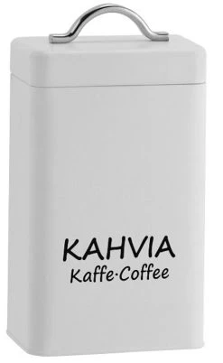 Ajattoman kaunis metallipurkki, johon voit säilöä kahvit. Purkin yhdellä sivulla teksti: Kahvia. Valittavana kolme eri värivaihtoehtoa. Sopii mainiosti keittiösi sisustamiseen tai lahjaksi.
